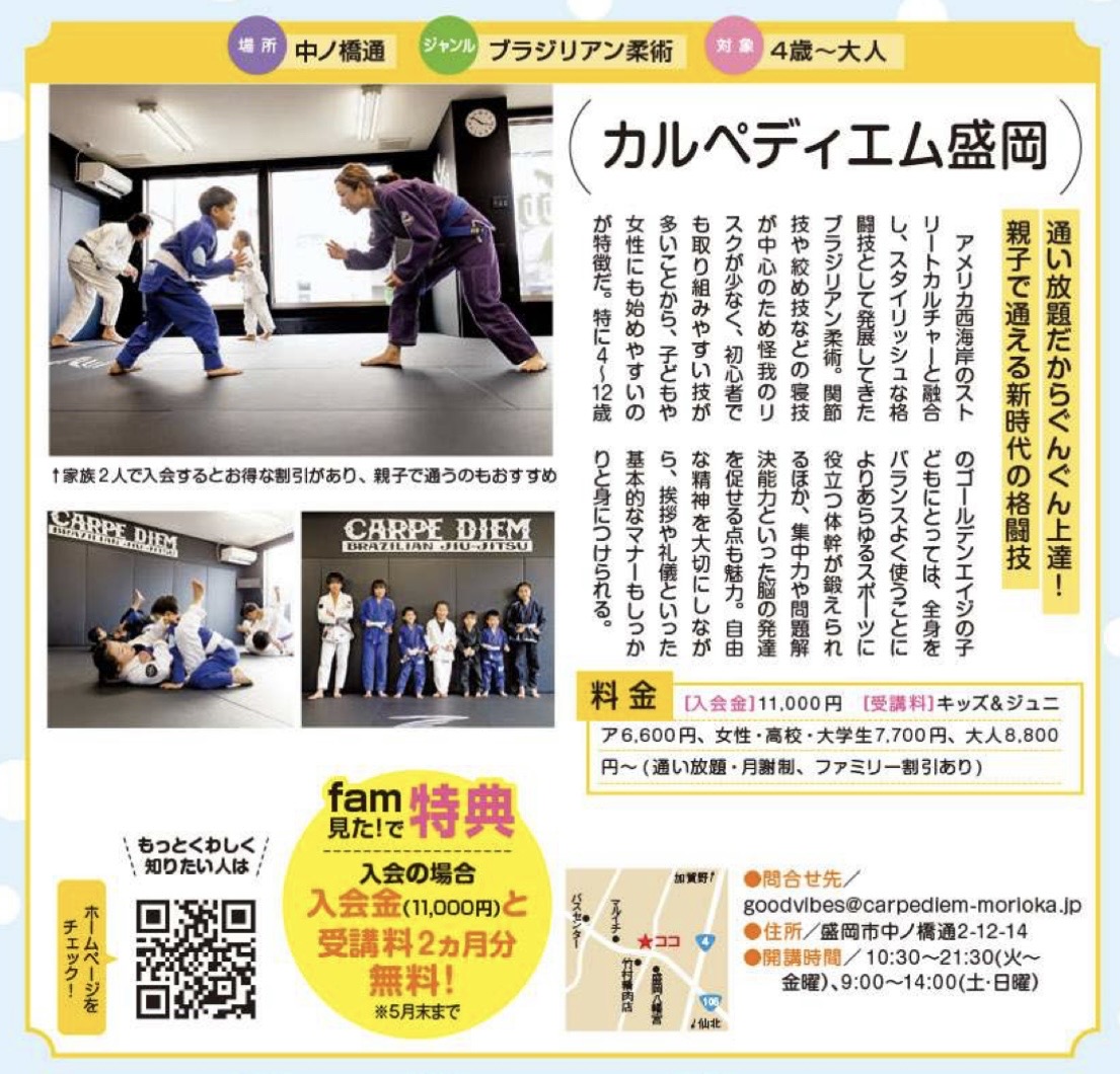 いわて子育て情報誌 fam [ファム]にカルペディエム盛岡が掲載されております!是非チェックしてみてください!