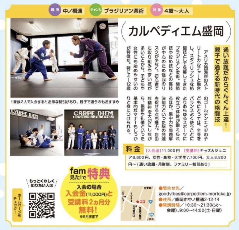 カルペディエム盛岡では、3月の入会キャンペーンを実施いたします! \\カルペディエム盛岡3月の入会キャンペーン// 昨年の7月1日にオープンしてから、たくさんの方にご入会いただき、柔術をライフスタイルとして楽しむ方がここ